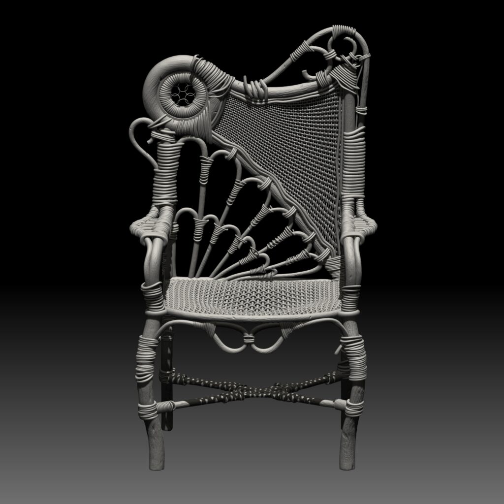 This model of a chair is something I made for a final project for a sculpting class. I took inspiration from a chair made by CLÈMENT GELLY & Cie in 1900.